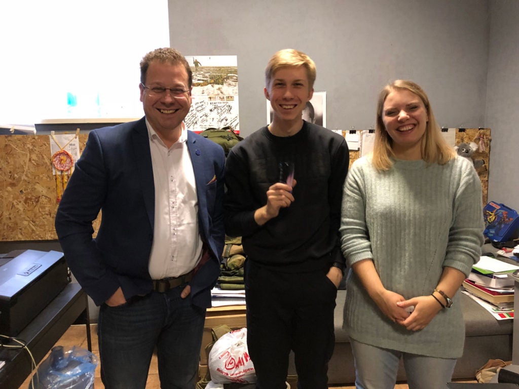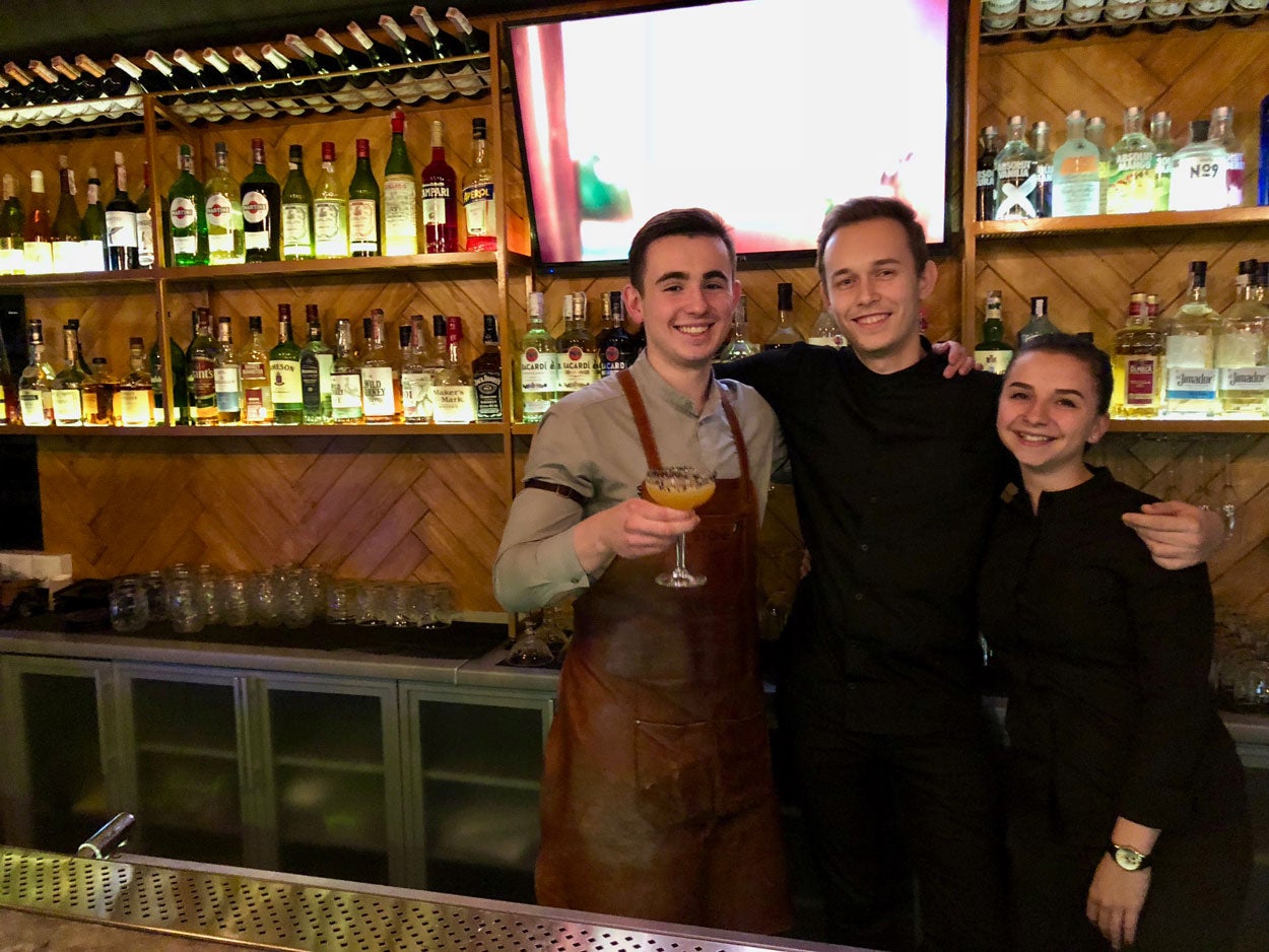 The staff at the Stone Restobar in Mariupol. From left to right: Nikita Skidkov, Nikita Klimenchenko, and Liza Kundel.
