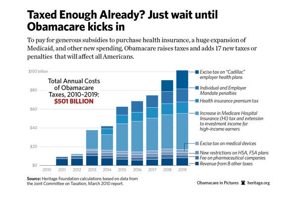 Yet Obamacare takes our health care system in exactly the wrong direction. Instead of putting people in charge of their own health care decisions, “it imposes several costly new mandates and restrictions on health insurers and providers that will raise health care costs and therefore premiums.” Further, “Obamacare raises taxes and adds 17 new taxes or penalties that will affect all Americans.”