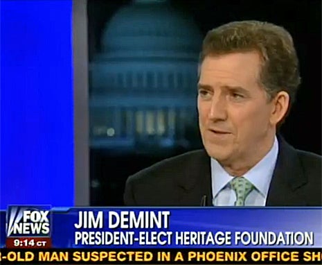 Heritage Foundation President-Elect Jim DeMint told Fox News’ Greta Van Susteren last night that President Obama is “running out of excuses” on America’s debt problem and liberals are in denial if they think Washington doesn’t have a spending addiction.