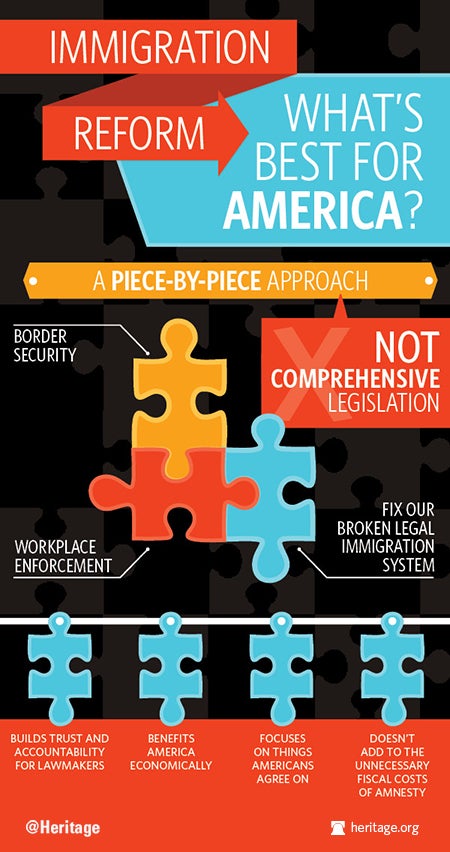 The Senate Judiciary Committee approved the Gang of Eight’s immigration bill on Tuesday. It will go to the Senate floor after the Memorial Day recess. Heritage has pointed out the problems with this “comprehensive” approach — including the staggering costs of amnesty and a failure to secure the border.