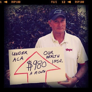 Send us a picture of yourself like George did above. Tell us how much your insurance is going up per month—write your increase on a sign.