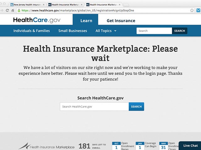 UPDATE: Just after 12:30 p.m., the administration said that users signing into the website for the first time can’t access enrollment and application tools because of “record” traffic. There are “more than 100,000 people concurrently in the system as of noon,” a spokesman told Politico.