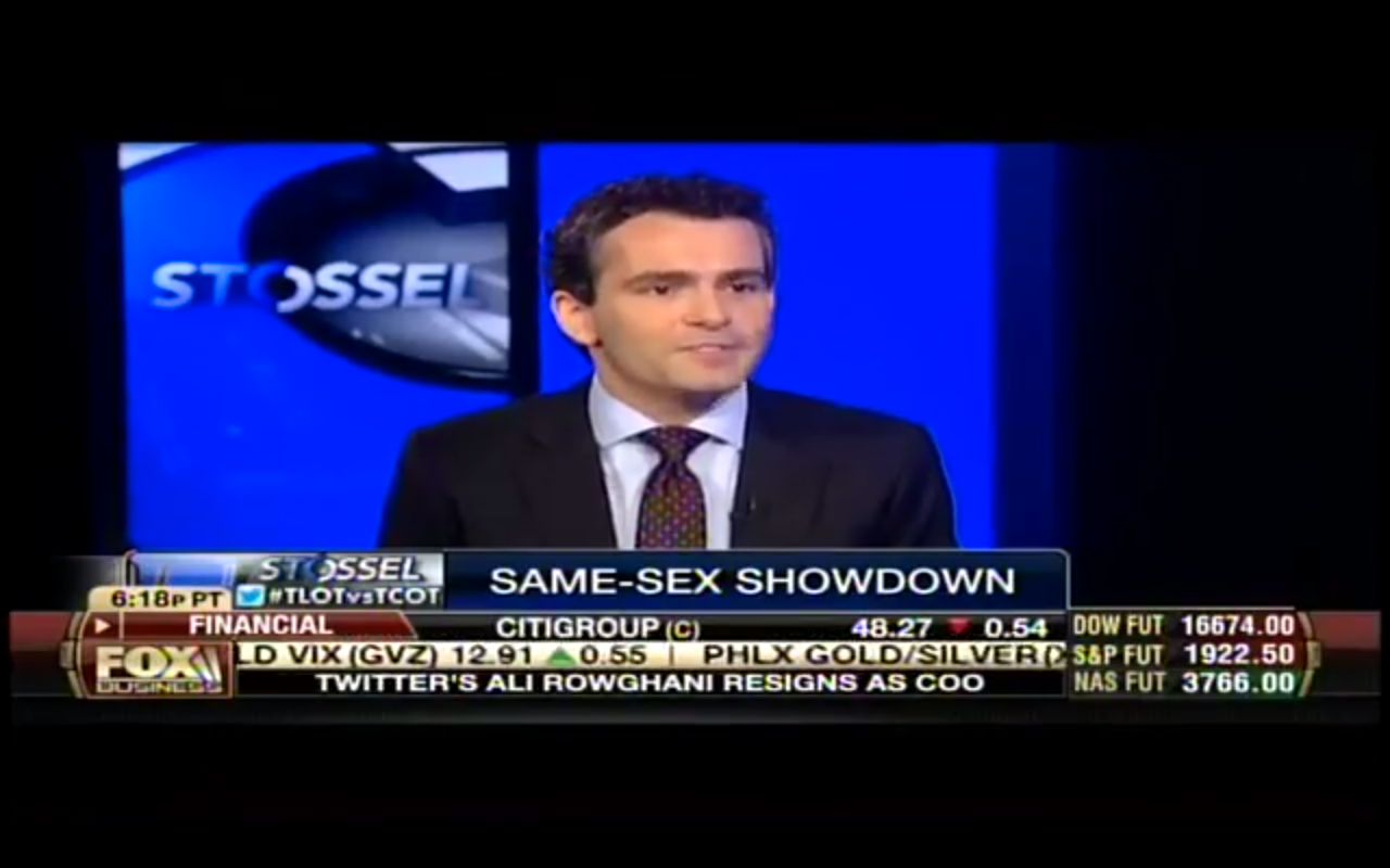 On Thursday, on his FOX Business show, investigative reporter and libertarian commentator John Stossel engaged in a rapid-fire exchange over marriage policy with Heritage Foundation scholar Ryan Anderson.