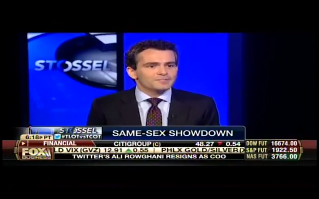 On Thursday, on his FOX Business show, investigative reporter and libertarian commentator John Stossel engaged in a rapid-fire exchange over marriage policy with Heritage Foundation scholar Ryan Anderson.