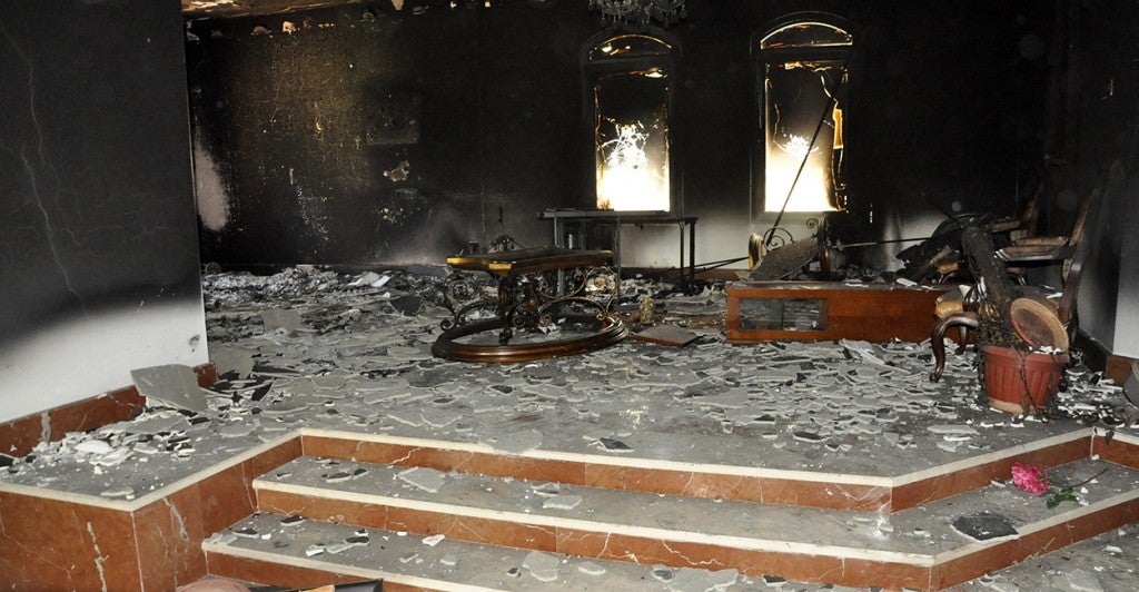 Burned-out cars at the gate of the U.S. consulate in Benghazi, Libya. (Photo: AFP/Getty Images/Newscom)