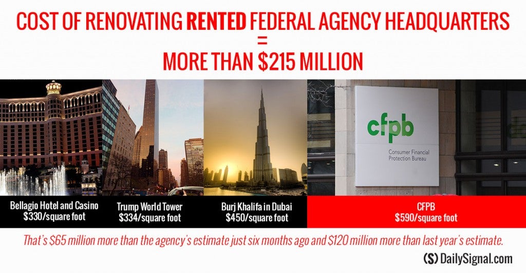 The newly created Consumer Financial Protection Bureau is renovating the Washington, D.C., headquarters it rents—at a cost per square foot that is more expensive than Trump World Tower in New York City.