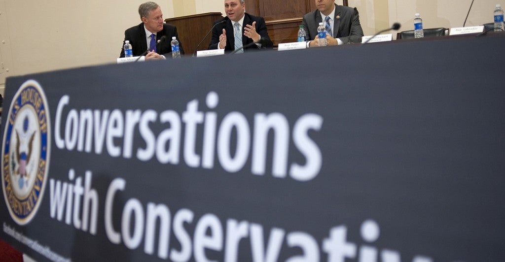 Reps. Raúl Labrador, R-Idaho, and Tim Huelskamp, R-Kansas, talked yesterday about the efforts of Democrats and “establishment” Republicans to save the 80-year-old federal agency after participating in Conversations with Conservatives, a monthly gathering of free market and liberty-minded lawmakers on Capitol Hill.