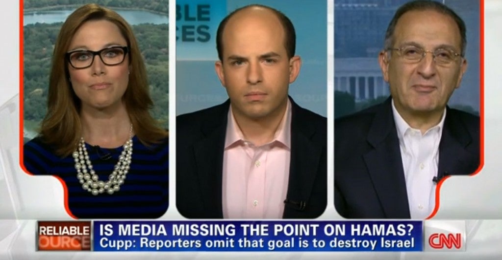“Crossfire” host S.E. Cupp went head to head on CNN’s “Reliable Sources” with James Zogby, president of the Arab American Institute, on the issue of media coverage of Hamas. During a heated discussion, Cupp charged that biased coverage has fostered “a false sense of moral equivalency” between Israel and Hamas. Zogby’s response: “That’s one of the most bizarre argument I’ve ever heard.”