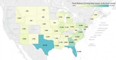 It’s an incomplete picture right now because states with poorly working exchange systems like Oregon, Hawaii, Nevada, and Maryland could have far more citizenship status problems.