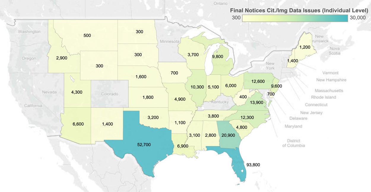 It’s an incomplete picture right now because states with poorly working exchange systems like Oregon, Hawaii, Nevada, and Maryland could have far more citizenship status problems.