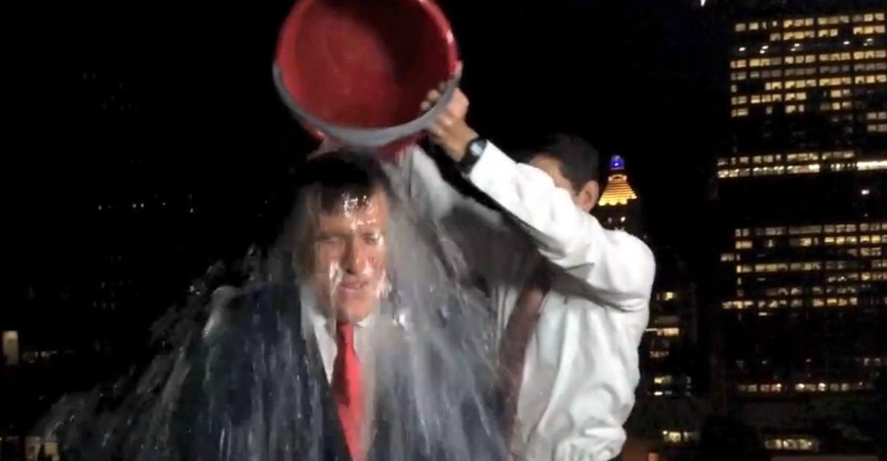 To kick off this weekend, former Republican presidential nominee Mitt Romney got in on the Ice Bucket Challenge action — in a suit, no less — thanks to his bucket-wielding 2012 running mate, Rep. Paul Ryan of Wisconsin.