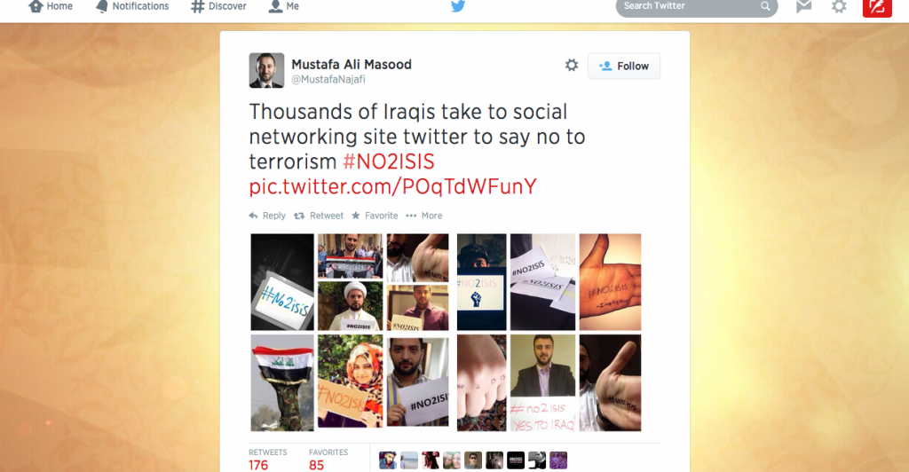 While the U.S. government unbelievably – according to President Obama himself – does not have a strategy for dealing with the threat from ISIS (Islamic State in Iraq and Syria), Iraqis themselves have found a way of countering the propaganda war being waged by this latest terrorist insurgency. In the echo chamber that is the social media sphere, fighting hashtags with hashtags can be hugely effective.