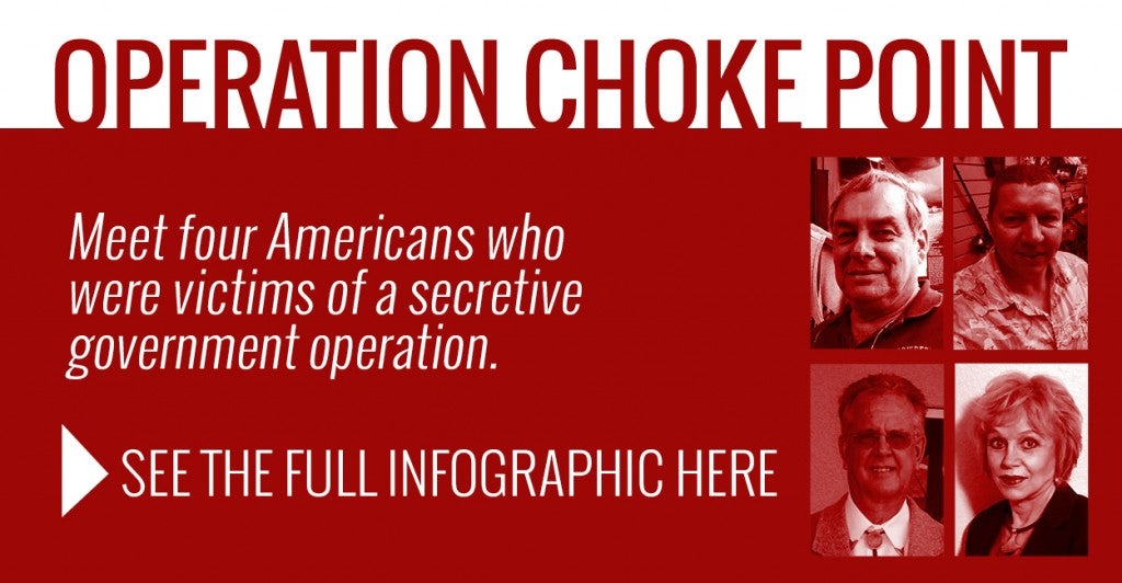Countless business owners across America have lost  bank accounts because of a Justice Department initiative called “Operation Choke Point.” According to a House report, the secretive effort pressures financial institutions to deny a variety of legal businesses access to the very banking system they need to survive, simply because the Obama administration finds the businesses objectionable. Targeted enterprises include payday lenders, pawn shops and gun sellers. Meet four business owners who experienced Choke Point’s adverse effects firsthand: