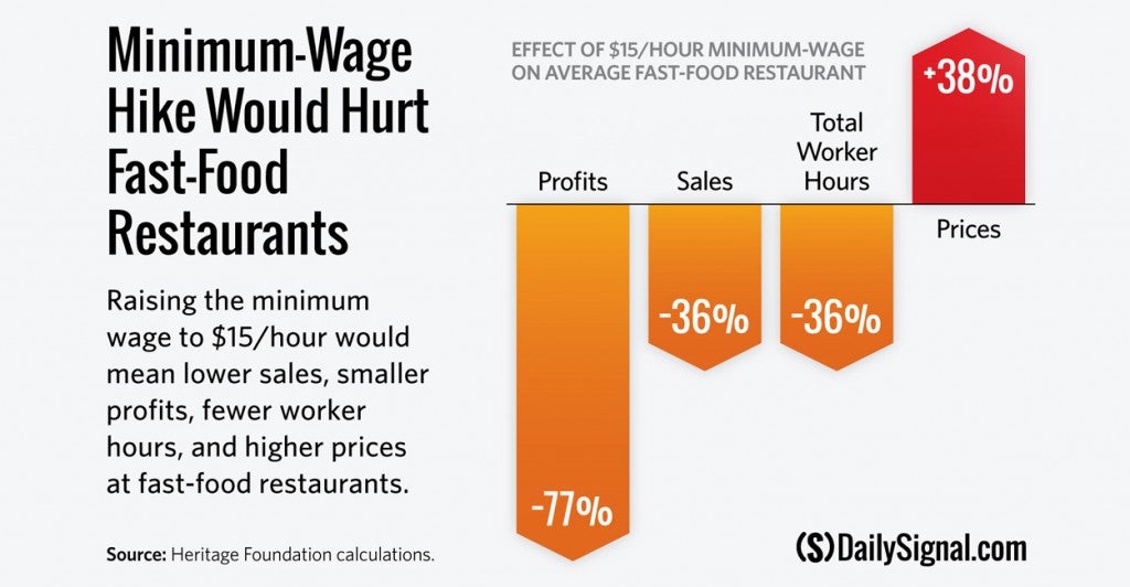 According to a new report released today by James Sherk, a labor policy expert at The Heritage Foundation, such an increase could result in fewer hours of work overall at fast-food restaurants and higher prices for all.