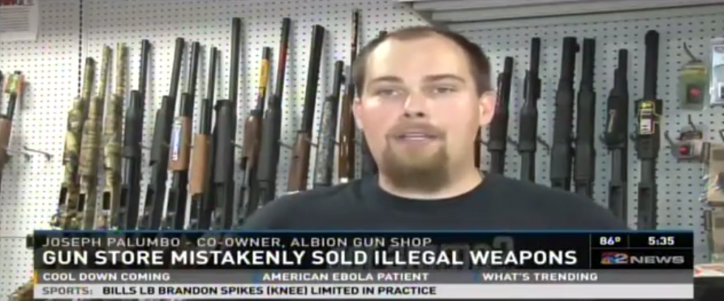 Joseph Palumbo, co-owner of the Albion Gun Shop, says police were looking for anyone who bought a modified AR-15. Palumbo thought the modification was OK, but New York’s strict gun-control law makes it illegal. State police later acknowledged it was an “unintentional” violation of the NY SAFE Act, which Gov. Andrew Cuomo signed into law last year.