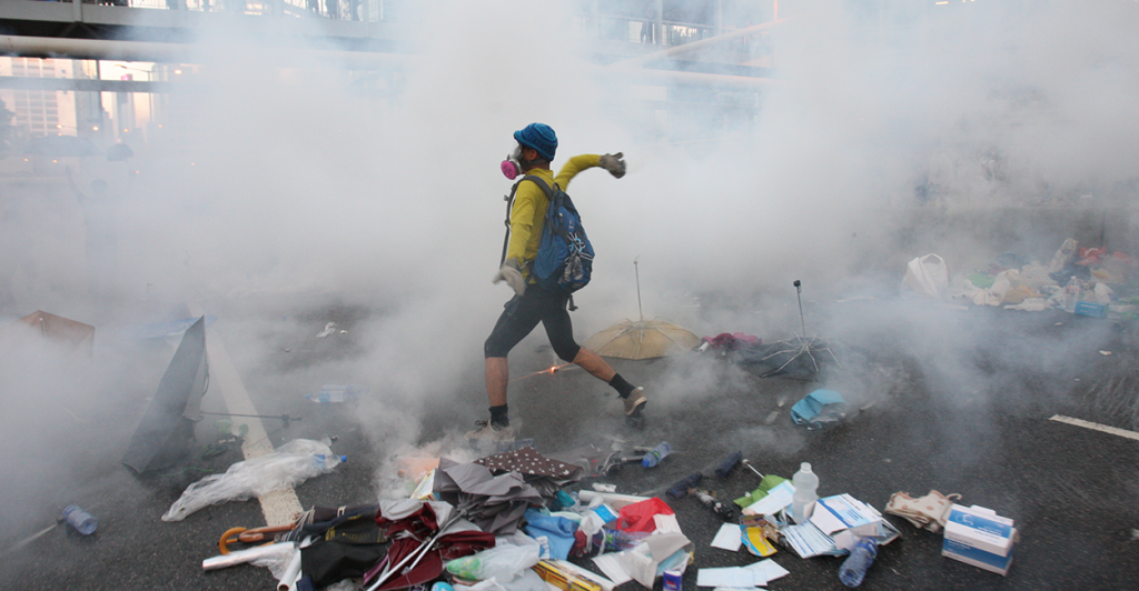 Police tear gas, pepper spray and batons flooded the front of Hong Kong government headquarters Sunday afternoon as the authorities cracked down on thousands of protesters who refused to end their three-day rallies and street blockades across the city.