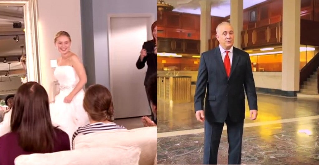 The first group of ads in a series of five to be released by the College Republican National Committee are based on the TLC show “Say Yes to the Dress,” and feature a young bride modeling a wedding dress named after a Republican and a dress named after a Democrat.