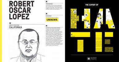 Featuring FBI-style sketches of faces and videos of advocates of marriage as the union of a man and a woman—including Scott Lively, Sharon Slater and Peter LaBarbera—the campaign likens Lopez and others to international criminals.