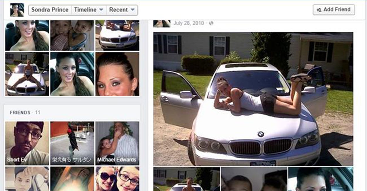 What she did not expect, however, was that Drug Enforcement Administration Special Agent Timothy Sinnigen would copy the pictures on her cell phone and use them to create a phony social media account. The profile was set up in the name of Sondra Prince—Arquiett’s former surname—and Sinnigen regularly used the phony account to post status updates, pictures and add friends—all in the hope of luring in other members of the drug ring.