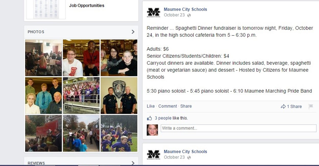 Because of those reports, he decided to check out the Maumee Schools Facebook page and found it advertised the campaign event there as well.