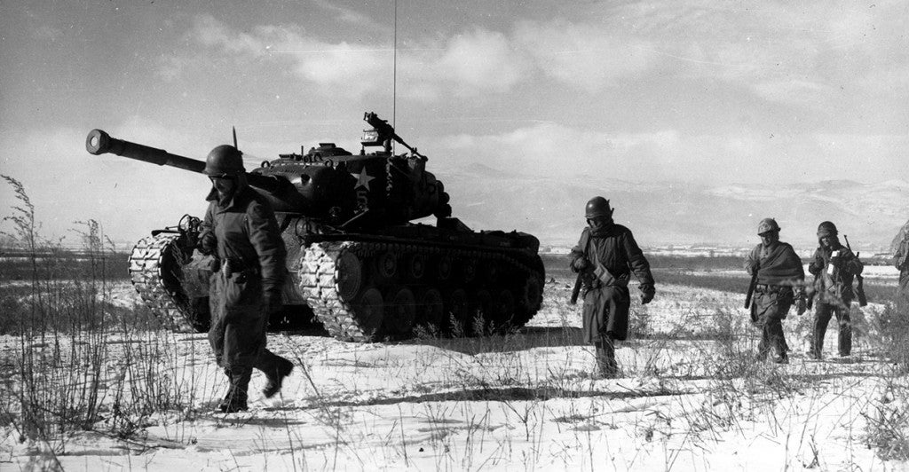 Many units of X Corps disintegrated under the relentless attacks. The Marines, under the command of Gen. Oliver Smith and Marine Corps legend Col. Chesty Puller, along with elements of the 7th Infantry Division and the British Royal Marines, fought a rear guard action throughout a slow retreat from Chosin. Smith famously declared, “Gentlemen, we are not retreating. We are merely attacking in another direction.” And he was correct. As a military historian later observed, you can’t retreat when you are completely surrounded.