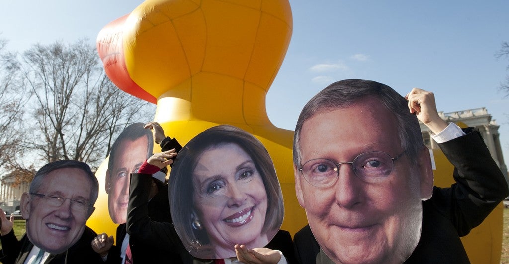 Protesters dressed as congressional leaders deploy an inflatable duck during the 2012 "lame duck" session. (Photo: Douglas Graham/Newscom)