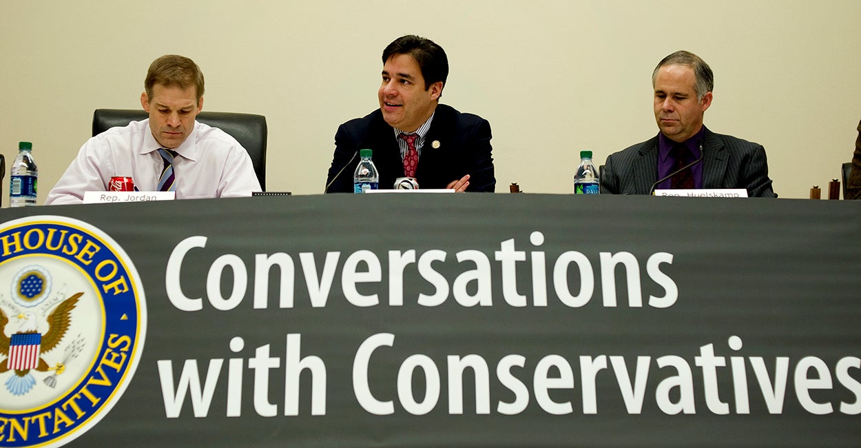 Conversations with Conservatives is a group of free market and liberty-minded members of Congress led by Reps. Raúl Labrador, R-Idaho, Tim Huelskamp, R-Kan., and Jim Jordan, R-Ohio. Other participants this month include Reps. Michele Bachmann, R-Minn., Joe Barton, R-Texas, John Fleming, R-La., and Cynthia Lummis, R-Wyo. Additional members may also participate.