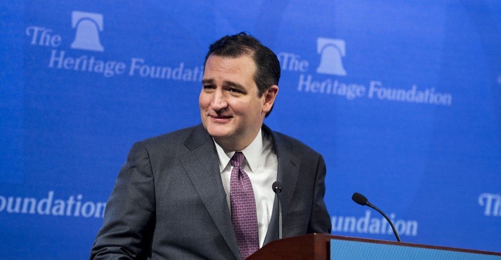 Sen. Ted Cruz used his foreign policy speech at The Heritage Foundation to criticize former Secretary of State Hillary Clinton. (Photo: Raffi Kirdi/Newscom)