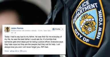 In it, 13-year-old Jaden Ramos writes: “Everyone says they hate cops but they are the people that they call for help. I will always love you and I will never forget you. RIP Dad.”