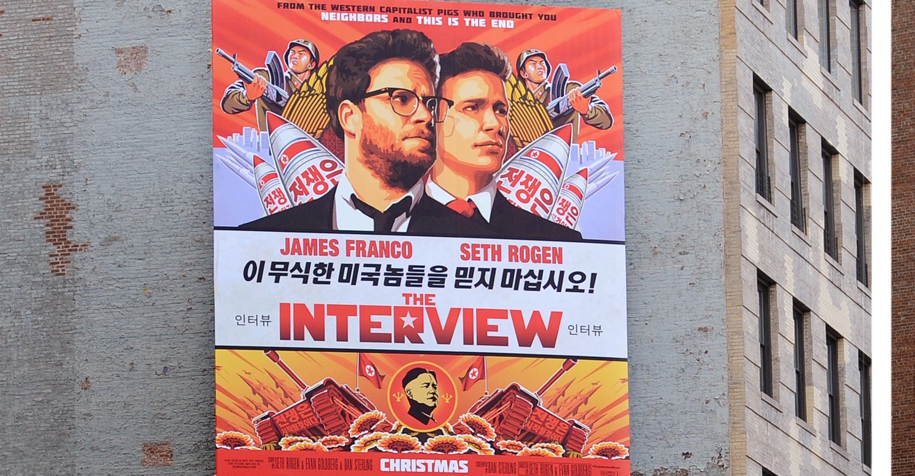 The comedy stars Seth Rogen and James Franco as journalists hired by the CIA to assassinate North Korea’s real-life dictator, Kim Jong Un.