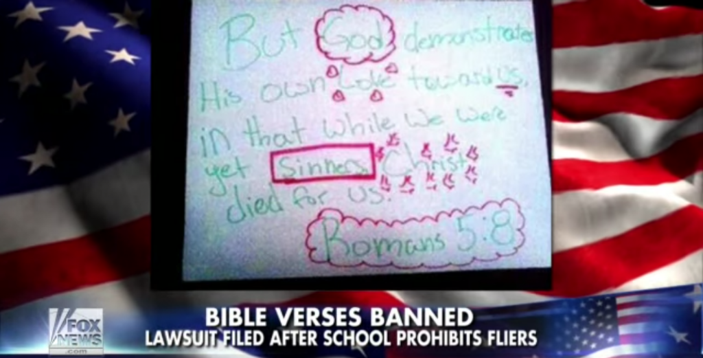 The school issued a statement to Fox News outlining its policy, which prohibits the distribution of religious material on school property before, during and after the school day.