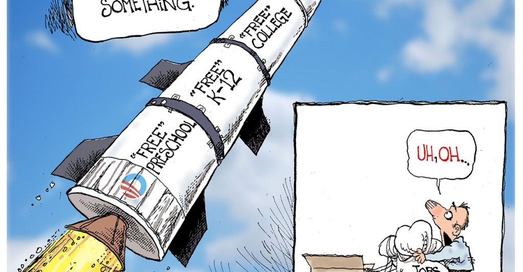 The administration’s proposal begs certain questions. Low-income students already have access to federal Pell Grants, which can be used to finance their tuition obligations at a community college. Indeed, the number of Pell recipients has doubled since 2008. So the proposal will serve as little more than a federal handout to the community college system.