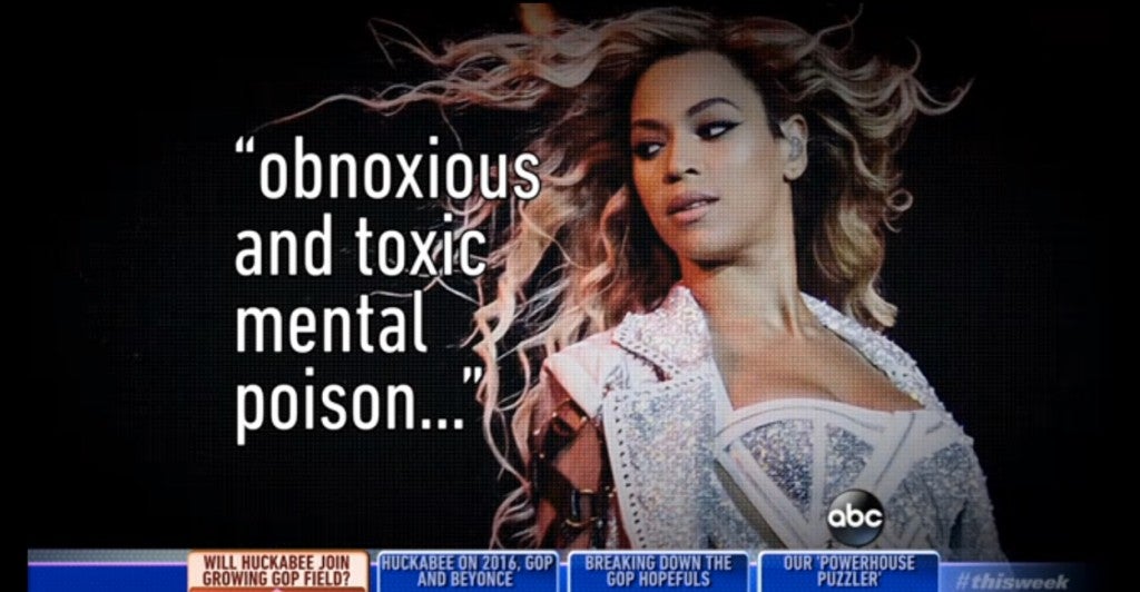 Huckabee also addressed a controversial passage in his new book, “God, Guns, Grits and Gravy,” where he criticizes Beyonce’s “explicit” song lyrics, and her husband Jay-Z as a “shrewd businessman” who exploits his wife “as a sex object.”