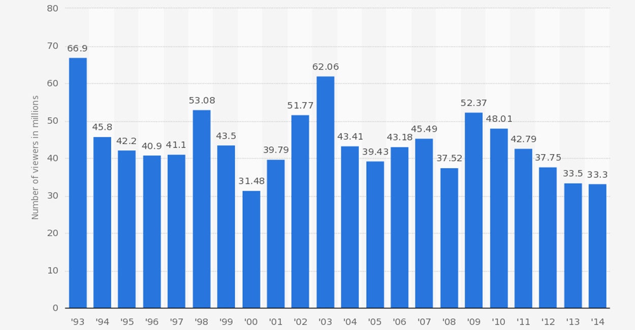 As President Obama makes his second-to-last State of the Union address tonight, he faces dwindling TV viewership numbers. Here’s a breakdown over the past seven years of his presidency, beginning in 2009:
