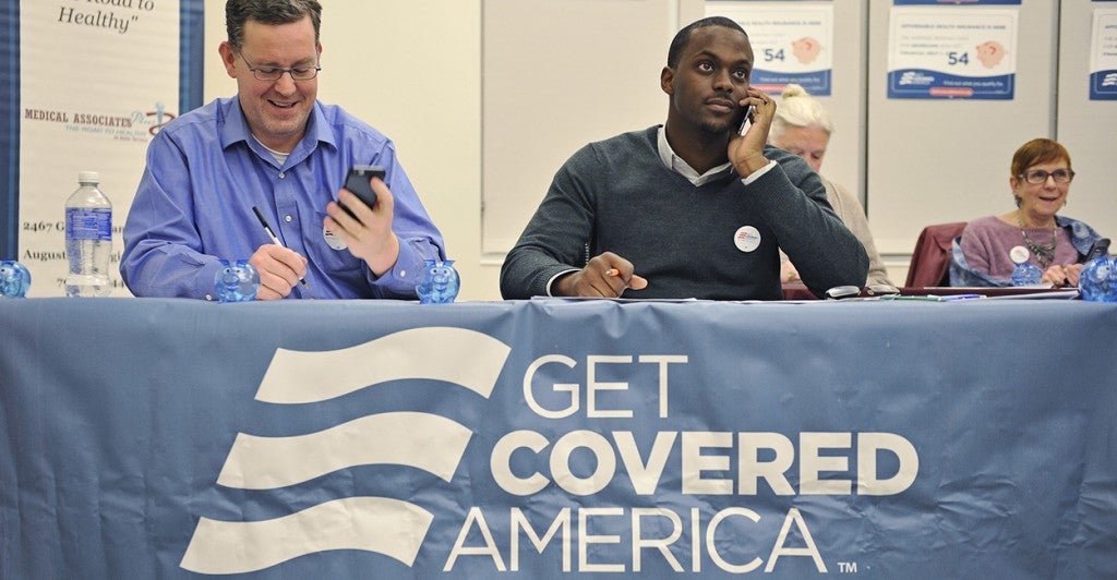 Volunteers Marshall High and Ernie Anderson make phone calls about the Affordable Care Act to remind people to get covered. (Photo: Jon-Michael Sullivan/The Augusta Chronicle)