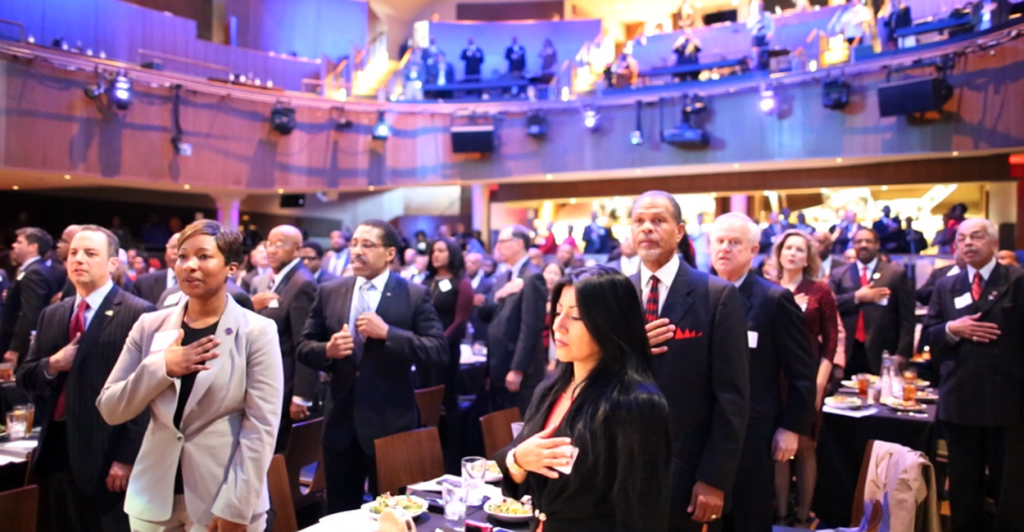 Love also spoke of her own trailblazing status as the first black Republican woman elected to Congress. Recalling her difficult life as a child, her mother “pointed to a line of people waiting for big blocks of cheese, she told me ‘not to take my scraped knees and your dad’s callous hands for granted. We are working so hard for you not to be somebody but to do something.’ I am here because of that lady,” Love concluded.