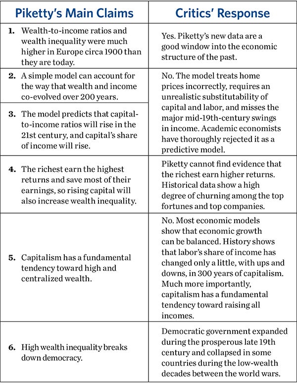 In his surprise best seller Capital in the Twenty-First Century, Thomas Piketty argues that the wealth of rich owners of capital grows faster than the wages of workers in capitalist economies. Hence, inequality always increases unless destructive world wars or heavy-handed government regulation of the economy intervene. To remedy modern inequality, he proposes punitive taxes on the wealthy.