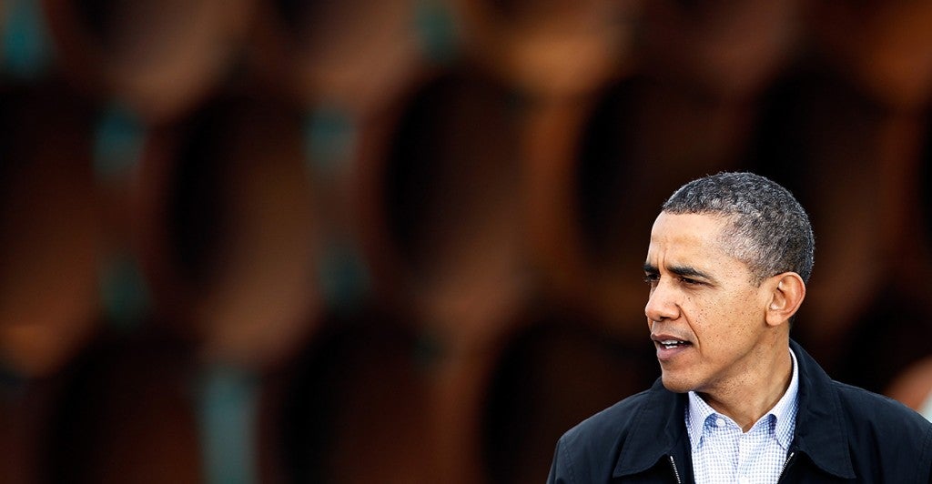 President Obama at the southern site of the Keystone XL pipeline on March 22, 2012. (Photo: Tom Pennington/Getty Images)