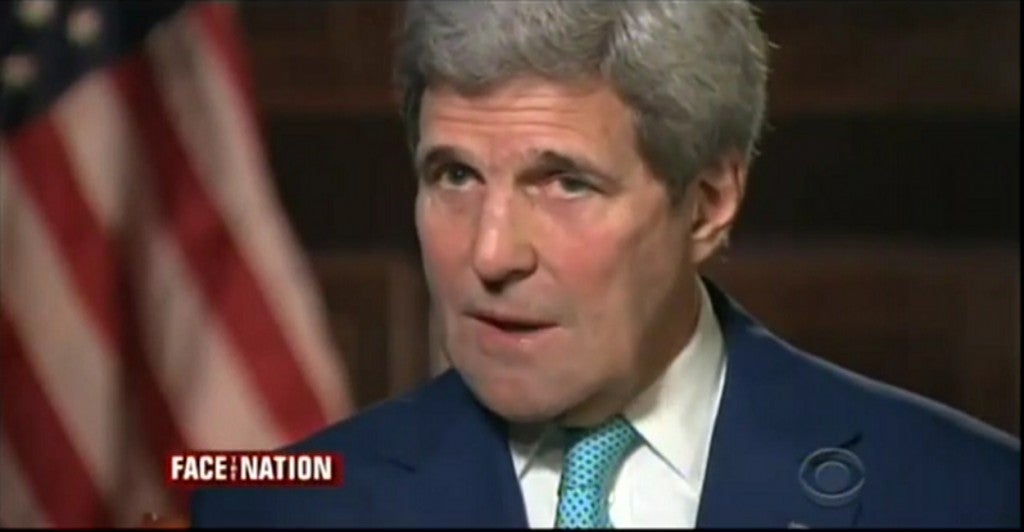 The United States must negotiate with Syrian President Bashar al-Assad in order to try to bring an end to the nation’s four-year civil war, Secretary of State John Kerry said on CBS News’ “Face the Nation” in an interview that aired today.