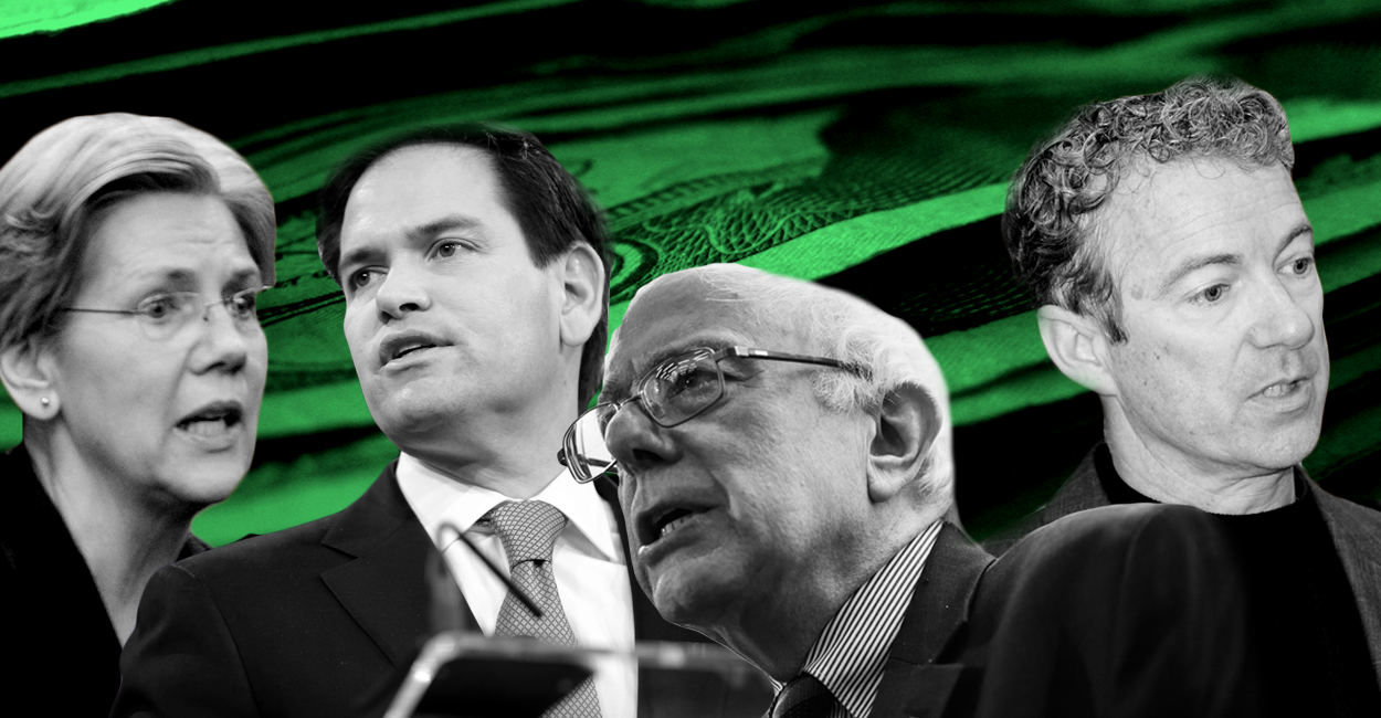 The political theater included Democrat Elizabeth Warren of Massachusetts and independent Bernie Sanders of Vermont, two possible contenders for the Democratic presidential nomination should Hillary Rodham Clinton’s campaign falter.