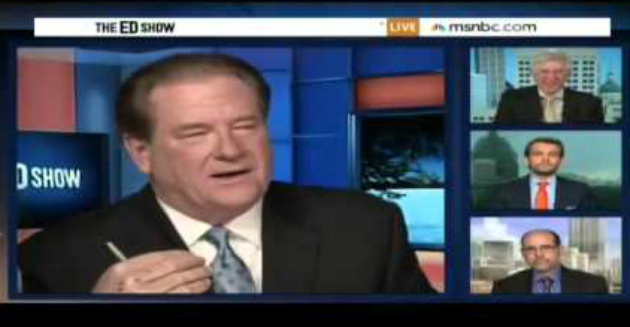 MSNBC host Ed Schultz cut Heritage Foundation’s Ryan T. Anderson’s mic off during a heated discussion about Indiana’s religious freedom law.