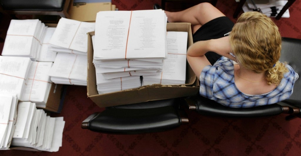 One of those piles contains all the legislation Congress passed in 2013. It contains about 800 pages and stands a few inches tall. The other holds all the rules and regulations that federal agencies proposed or adopted that same year. It contains 80,000 pages and stands 11 feet tall.