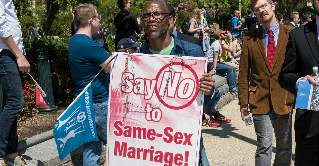 Chief Justice John Roberts asked the second question and suggested that while one side says they want to “join in the institution,” the other side says “they’re seeking to redefine the institution.” Roberts went on to add: