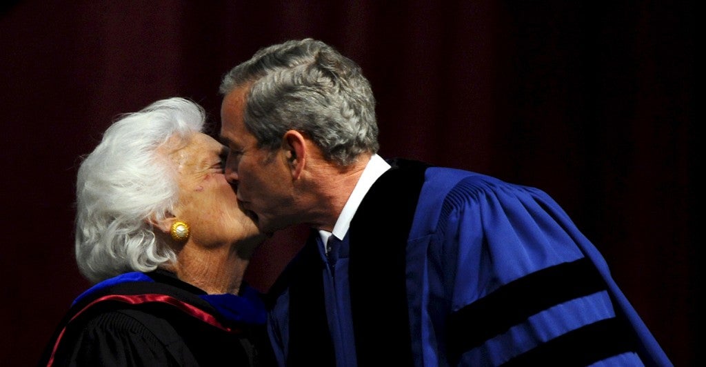 During a commencement address at Southern Methodist University, George W. Bush joked with the audience about his mother, Barbara: