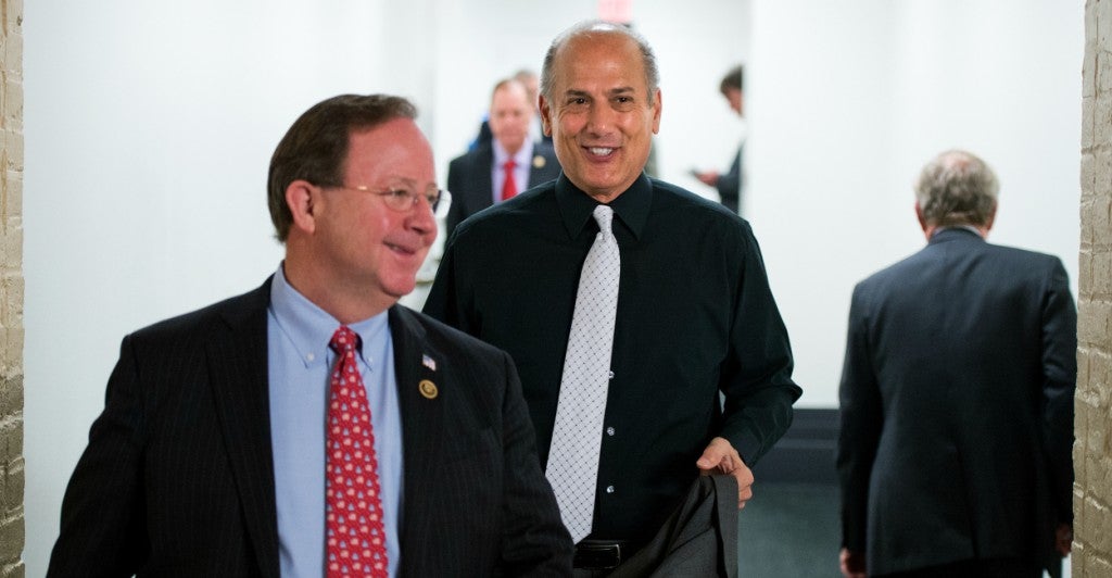 Republican Study Committee Chairman Bill Flores, R-Texas, and Rep. Tom Marino, R-Pa. Marino supports the Export-Import Bank's reauthorization, though the Republican Study Committee announced its opposition to the bank today. (Photo: Tom Williams/CQ Roll Call/Newscom)