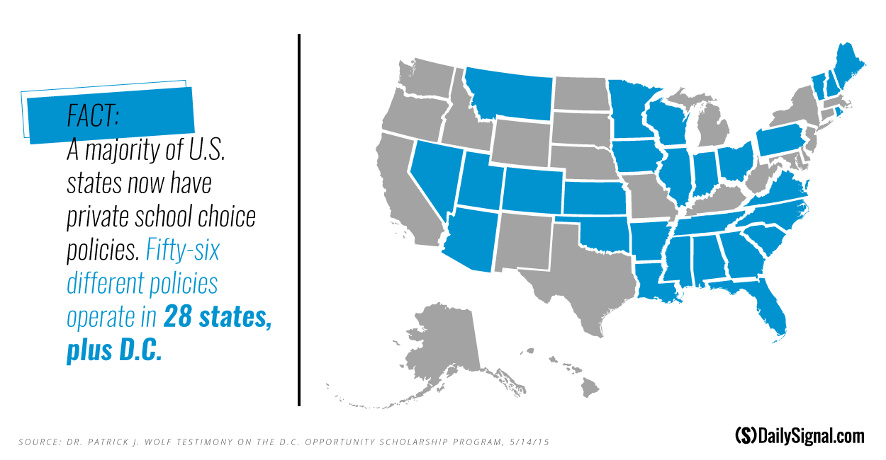 In the United States today, 56 different school choice policies exist in 28 states plus the District of Columbia, and the number of choice policies has approximately doubled every four years from 2000 to 2012.