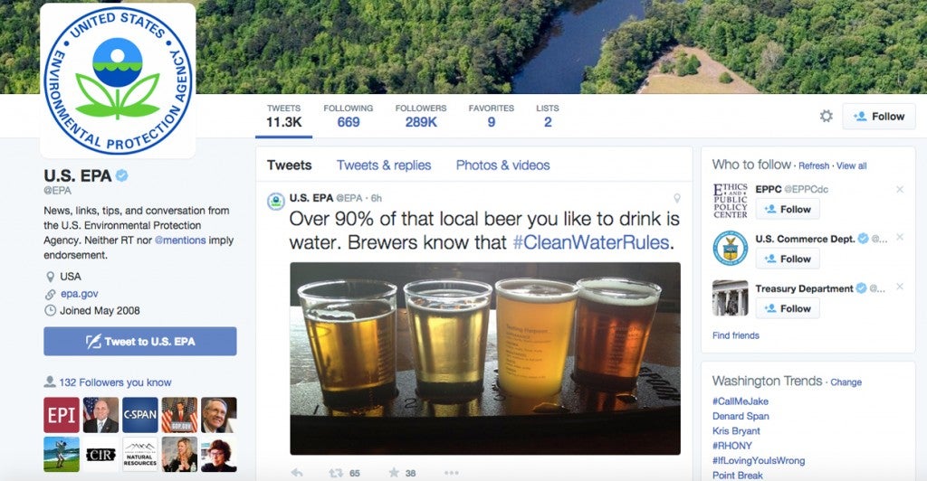 According to The New York Times, “Late last year, the EPA sponsored a drive on Facebook and Twitter to promote its proposed clean water rule in conjunction with the Sierra Club.”