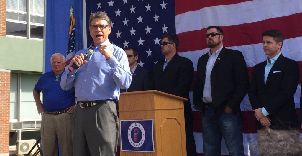 “If you elect me your president, there will be an individual that goes to the Oval Office every day, committed to the military men and women and to the veterans of this country,” Perry said.
