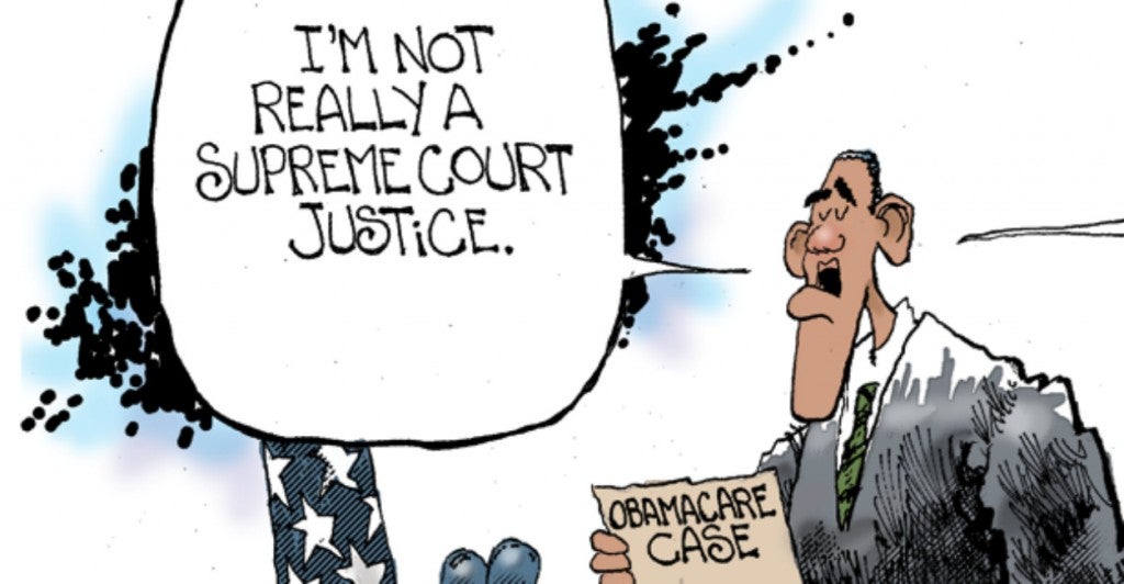 Putting on his constitutional-lawyer-in-chief hat in 2012, Obama said, “I’m confident that the Supreme Court will not take what would be an unprecedented, extraordinary step of overturning a law that was passed by a strong majority of a democratically elected Congress.”