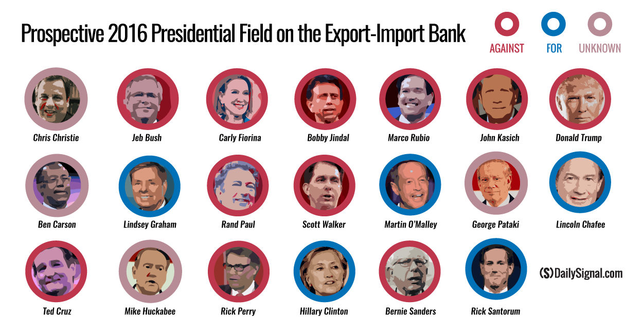 Although the charter will expire, supportive lawmakers may attempt to revive it in the future if an amendment concerning the bank is added to a must-pass bill, such as legislation supporting the Highway Trust Fund. With the bank’s ultimate fate still unclear, here are the current presidential candidate’s positions on renewing Ex-Im.